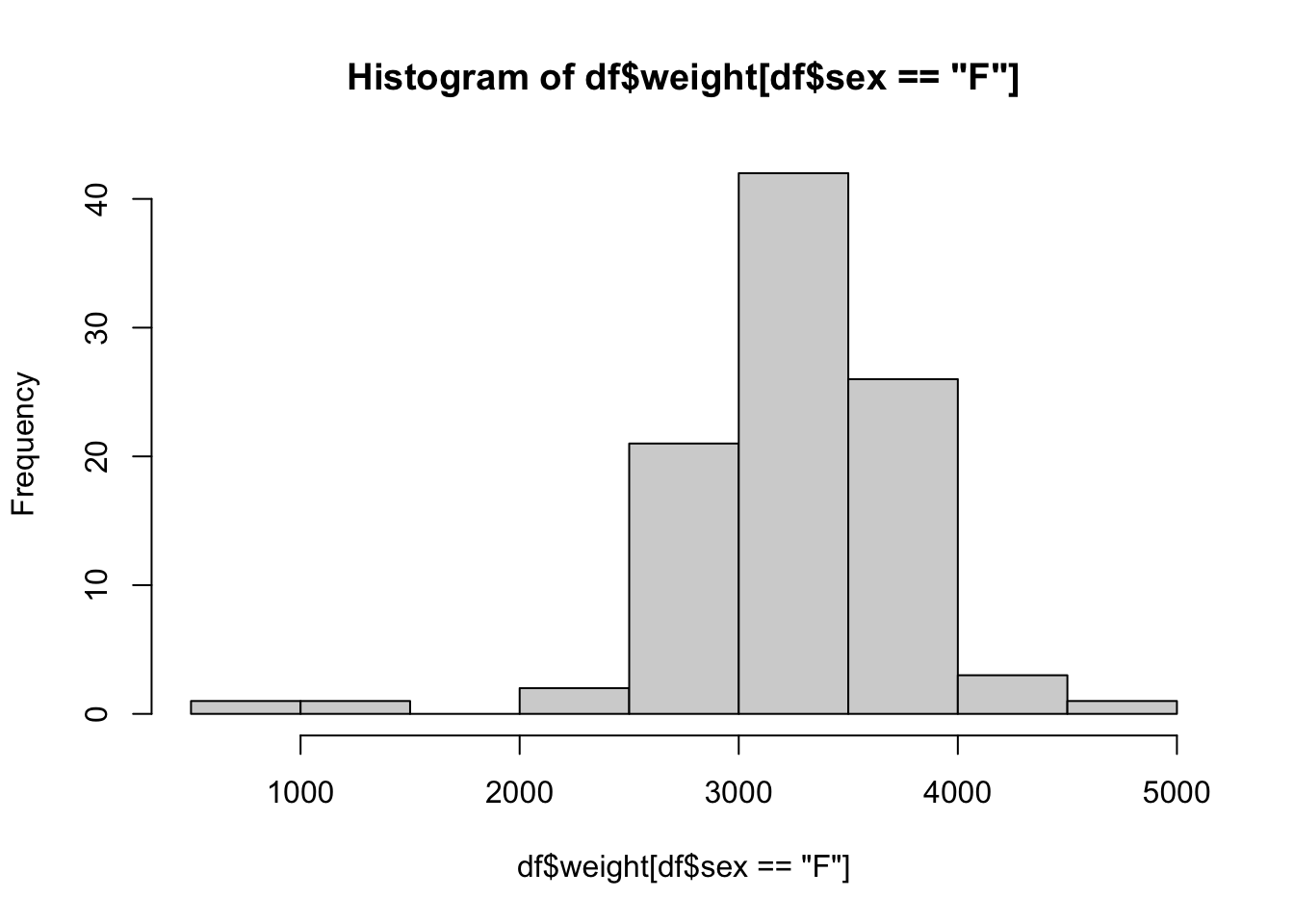 df <- BabyData1In fact, all you need to do is put your cursor on the line containing df <- BabyData1 and rerun that line. We verify this “fix” worked by once again looking at the contents of df$sex.