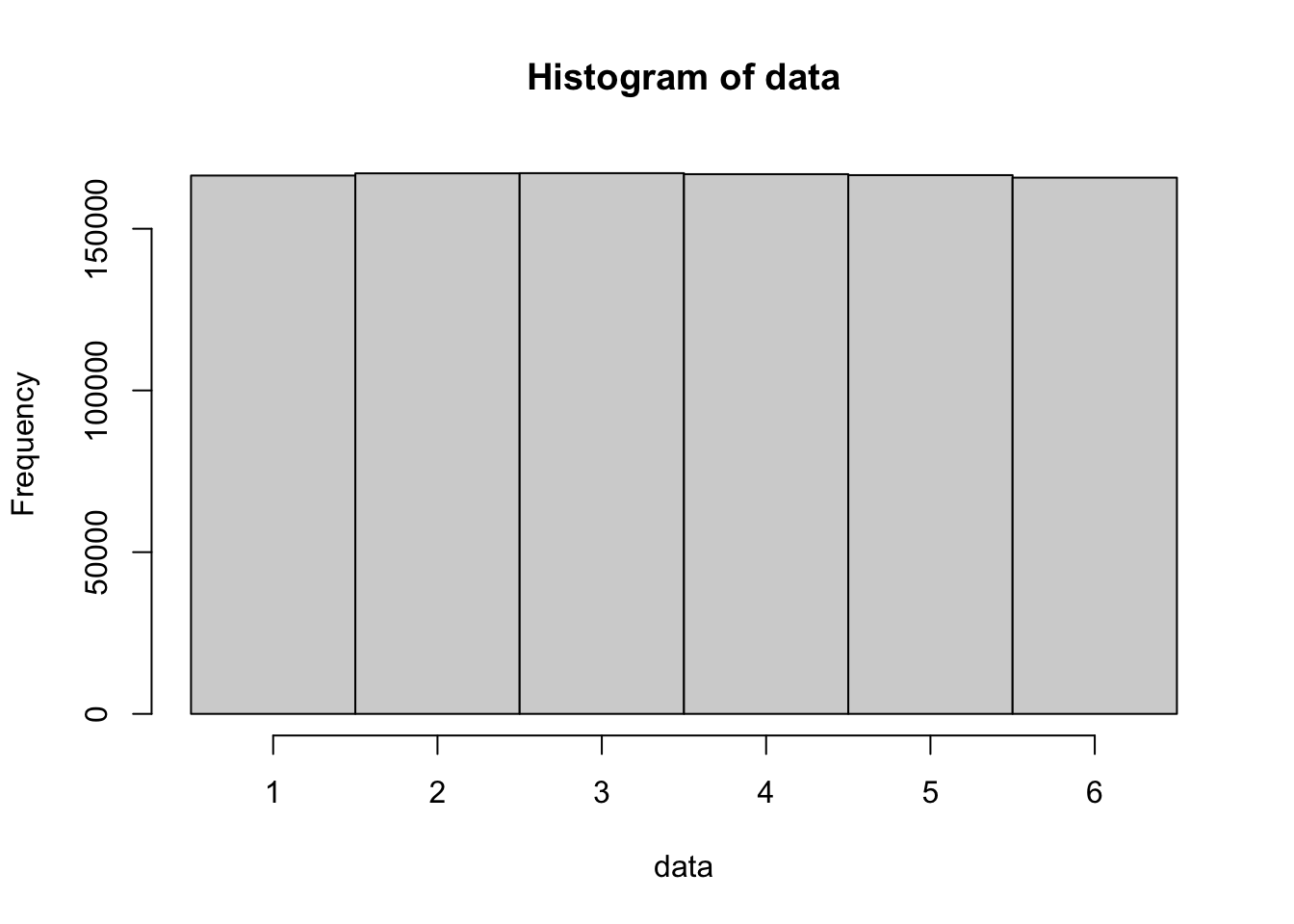 This gives us all the values of \(X\). As each probability is the same, we can simply multiply this vector by \(\frac{1}{6}\).